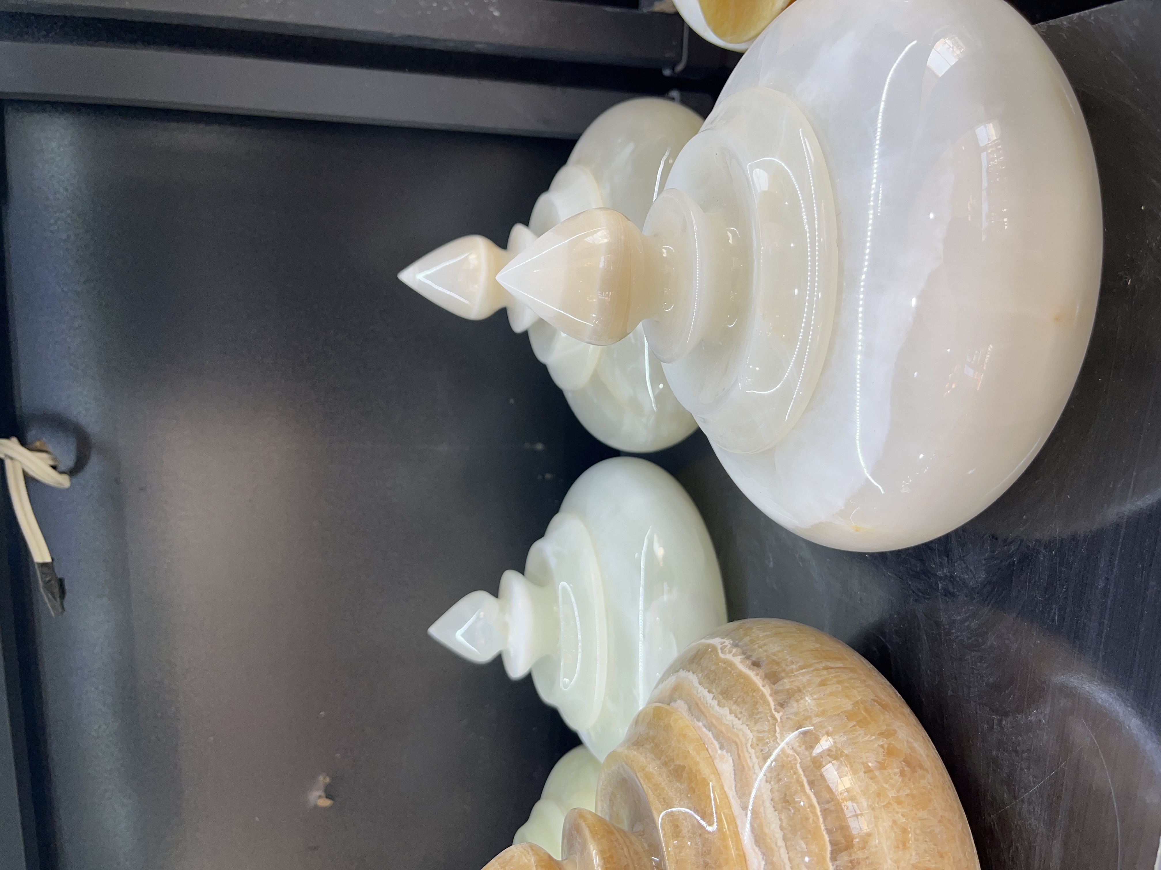 گلدان سنگی مرمر سفید نارنجی (جفت) ارتفاع ۴۰