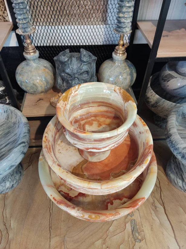 ست میوه خوری سه تیکه پایه دار سنگی