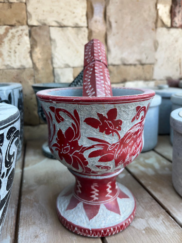 گلدان سنگی مرمر سفید نارنجی (جفت) ارتفاع ۴۵