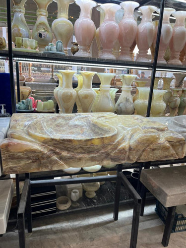 گلدان سنگی مرمر نارنجی (جفت) ارتفاع ۷۰